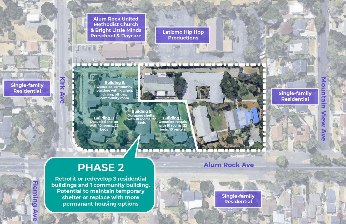 The site at 10 Kirk Avenue in San Jose, currently serving as a temporary shelter for veterans, offers an incredible opportunity to continue serving the veteran population with expanded, holistic services including adding permanent affordable housing options for veterans.